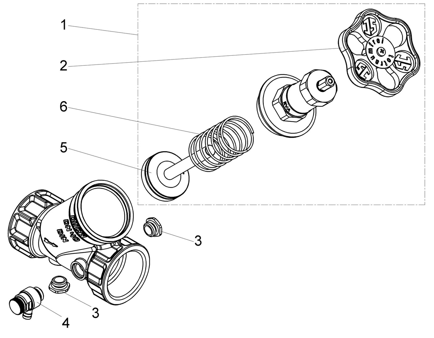 JS KFR-Ventil mit Muffenanschluss, mit Entleerung, mit nicht steigender Spindel, DN40, Innengewinde 1 1/2", DVGW geprüft, lose.