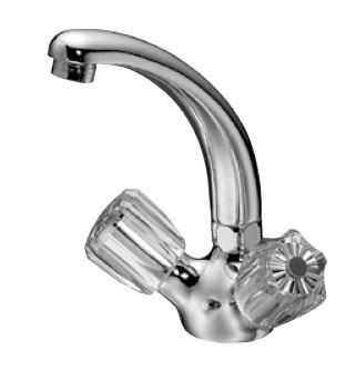 KAJA Waschtisch-Zwei-Griff-Temperierarmatur CLASSIC Niederdruck, Gussschwenkauslauf, Kettenhalter, chrom