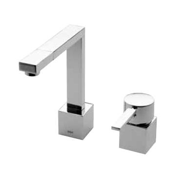 KAJA Waschtisch-Zwei-Loch-Armatur B-Quadrat schwenkbar, Zugknopf-Ablaufgarnitur, chrom