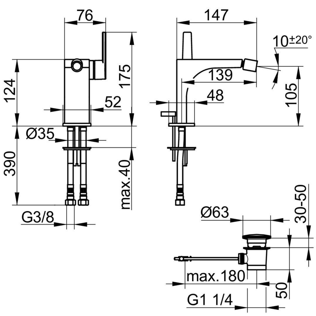 KEUCO Bidet-Einhebelmischer Edition 11 Ausladung 139mm, mit Ablaufgarnitur, verchromt K20579035