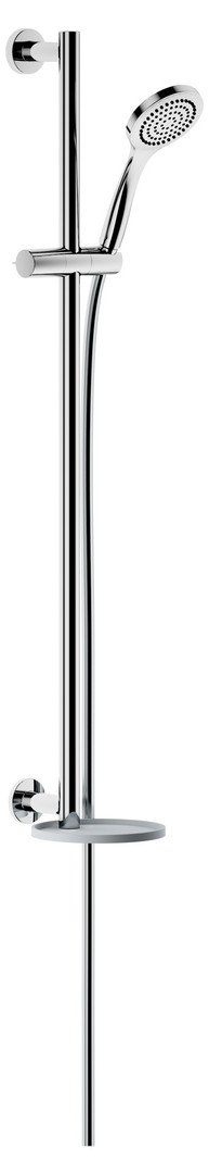 Brausestange (595850109x1) Höhe 855 mm, Rosetten rund, Brauseschieber für Schläuche mit konischer Mutter, Brausehalter wahlweise links oder rechts, Neigungswinkel verstellbar, mit Fliesenausgleichsscheibe (5 mm), Ablage schwenkbar, Handbrause (59580010100) Anschlussart G 1/2, Normalstrahl, mit Antikalk-System, mit ECO AIR Funktion, Durchflussmenge 11 l/min, für Durchlauferhitzer geeignet, Brauseschlauch (54995011600) Länge 1600 mm, Anschlussart G 1/2, beidseitig konische Mutter, beidseitig verdrehgesichert, Kunststoffschlauch, mit Knickschutz