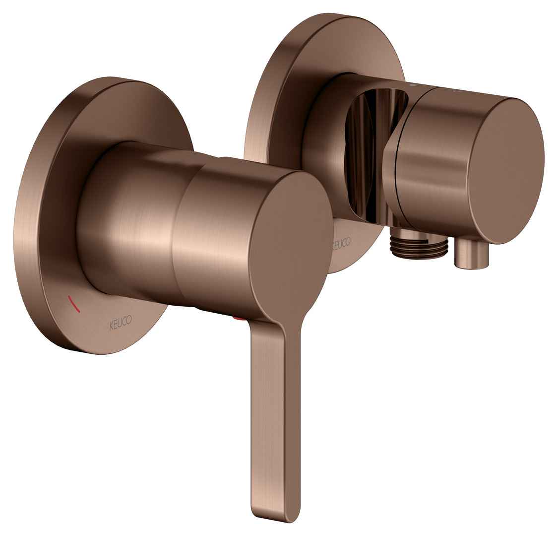 KEUCO Fertigmontageset Edition 400 UP-Einhebelmischer, mit Schlauchanschluss, Brausehalter, für 2 Verbraucher, rotgold gebürstet