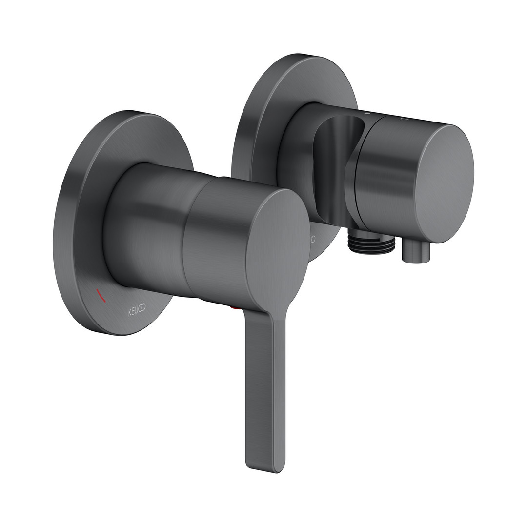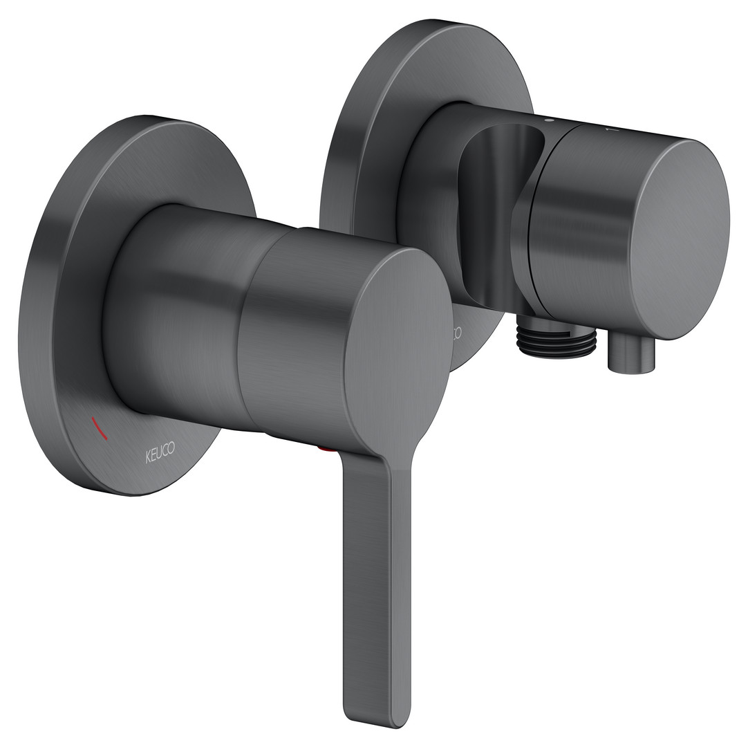 KEUCO Fertigmontageset Edition 400 UP-Einhebelmischer, mit Schlauchanschluss, Brausehalter, für 2 Verbraucher, schwarzchrom gebürstet