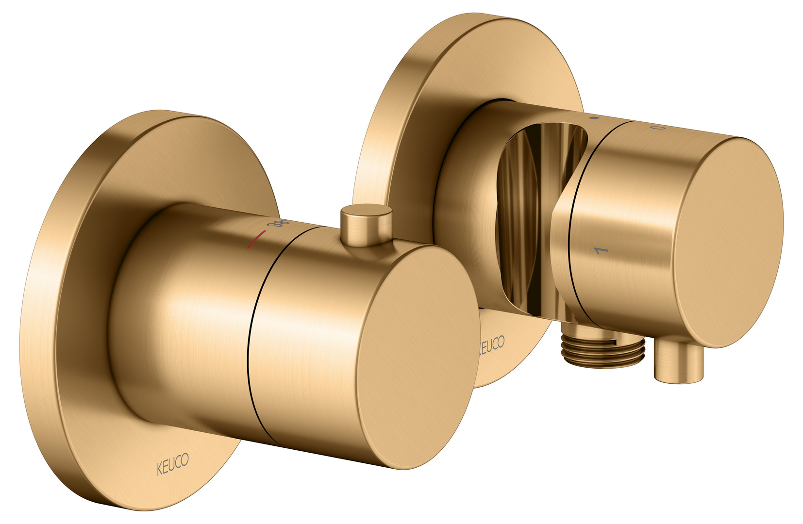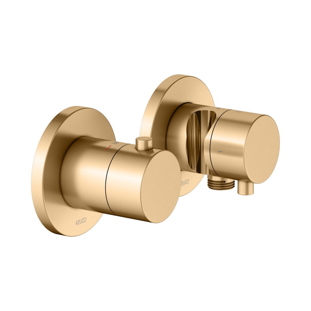 KEUCO Fertigmontageset Edition 400 UP-Thermostatarmatur, mit Schlauchanschluss, Brausehalter, für 2 Verbraucher, messing gebürstet