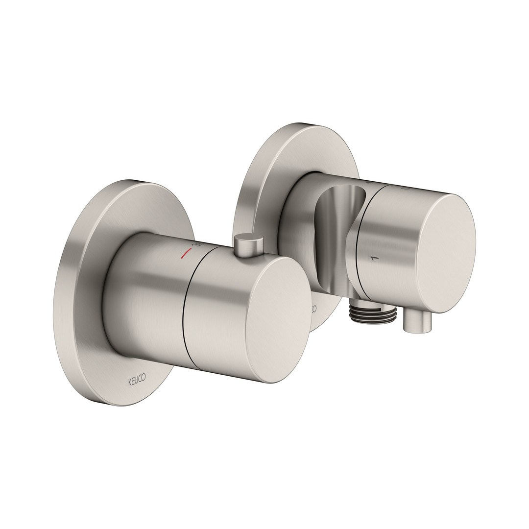 KEUCO Fertigmontageset Edition 400 UP-Thermostatarmatur, mit Schlauchanschluss, Brausehalter, für 2 Verbraucher, nickel gebürstet
