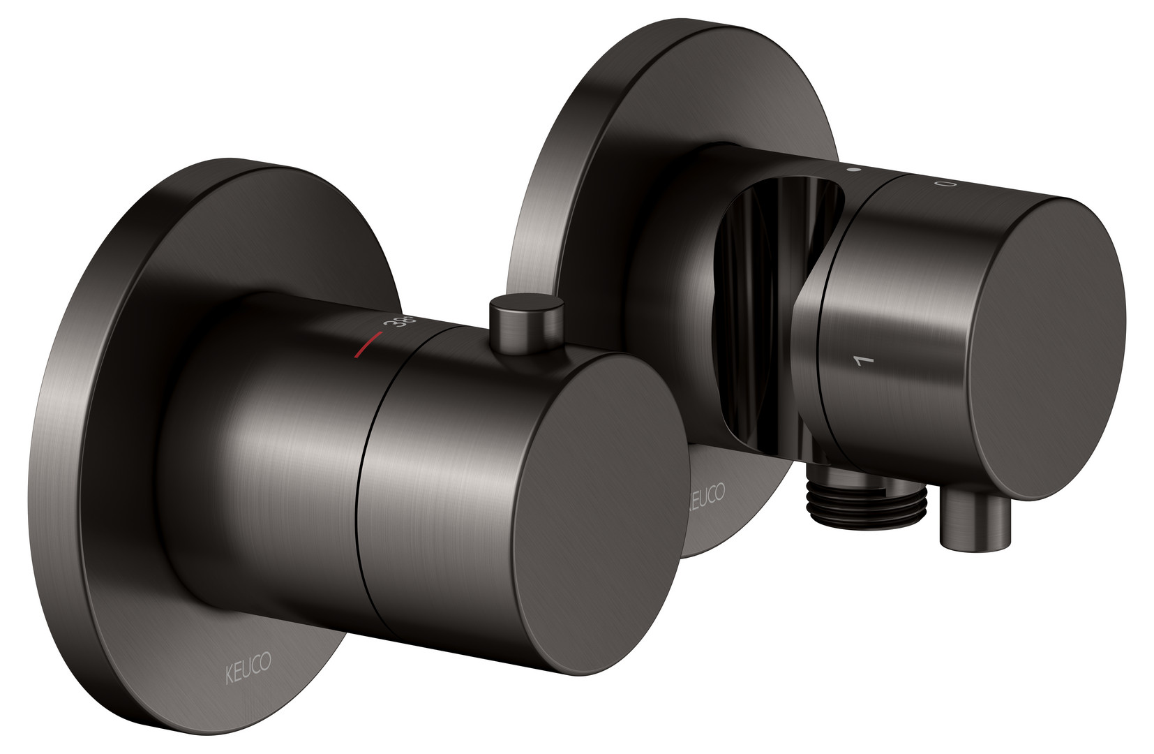 KEUCO Fertigmontageset Edition 400 UP-Thermostatarmatur, mit Schlauchanschluss, Brausehalter, für 2 Verbraucher, titanschwarz gebürstet