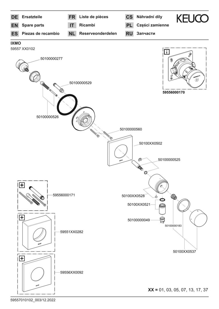 KEUCO Fertigmontageset IXMO UP-2-Wege-Ab-/Umstellventil, Schlauchanschluss, Griff Pure, eckig, verchromt