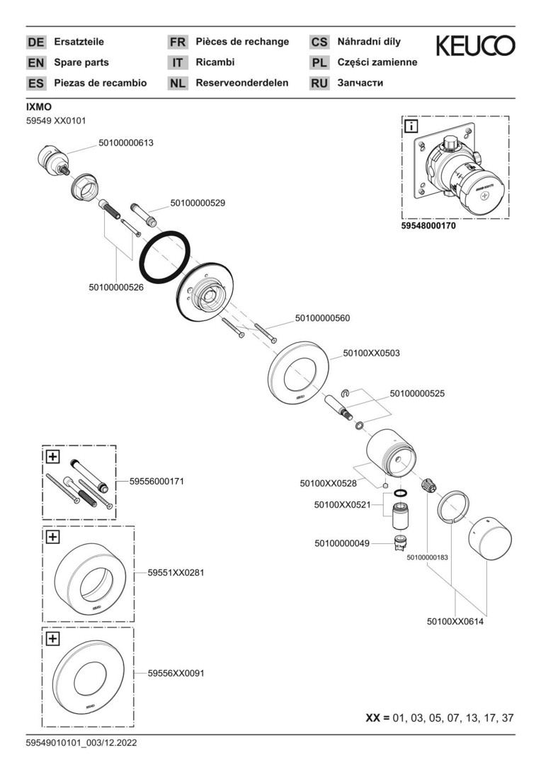KEUCO Fertigmontageset IXMO UP-3-Wege-Ab-und Umstellventil, Schlauchanschluss, Griff Pure, rund, verchromt