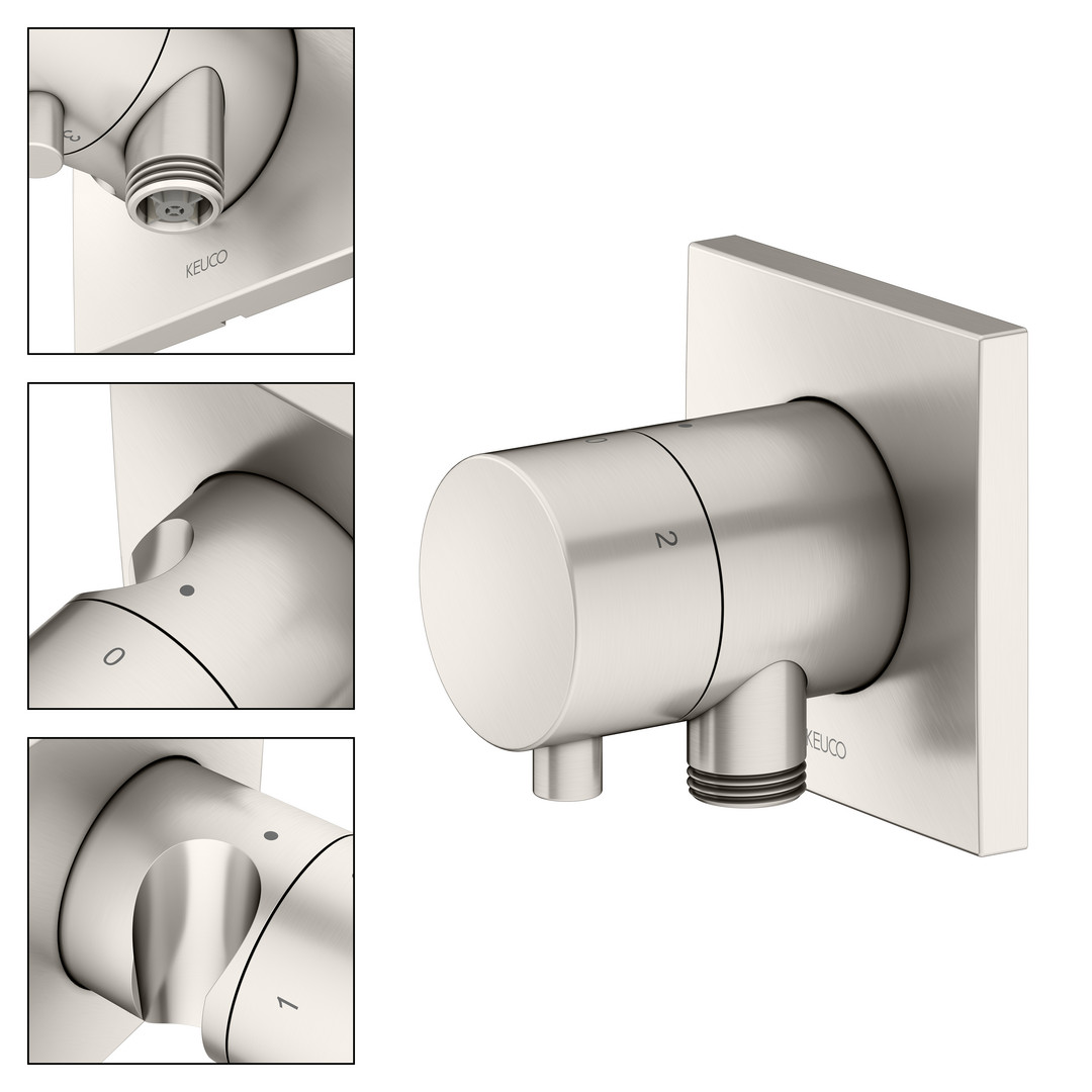 KEUCO Fertigmontageset IXMO UP-Umstellventil, Rosette eckig, mit Absperrung, nickel gebürstet K20579455