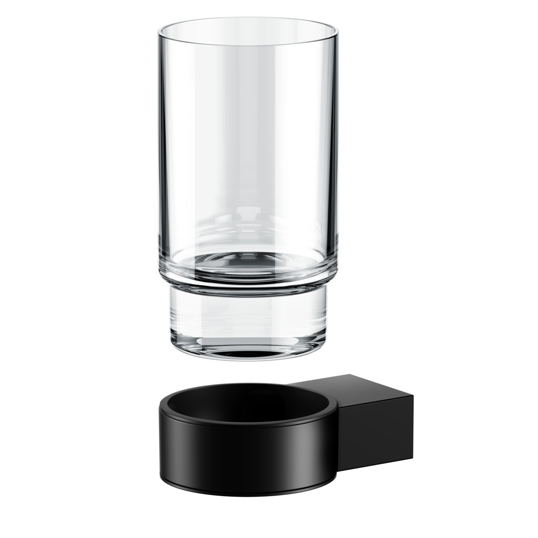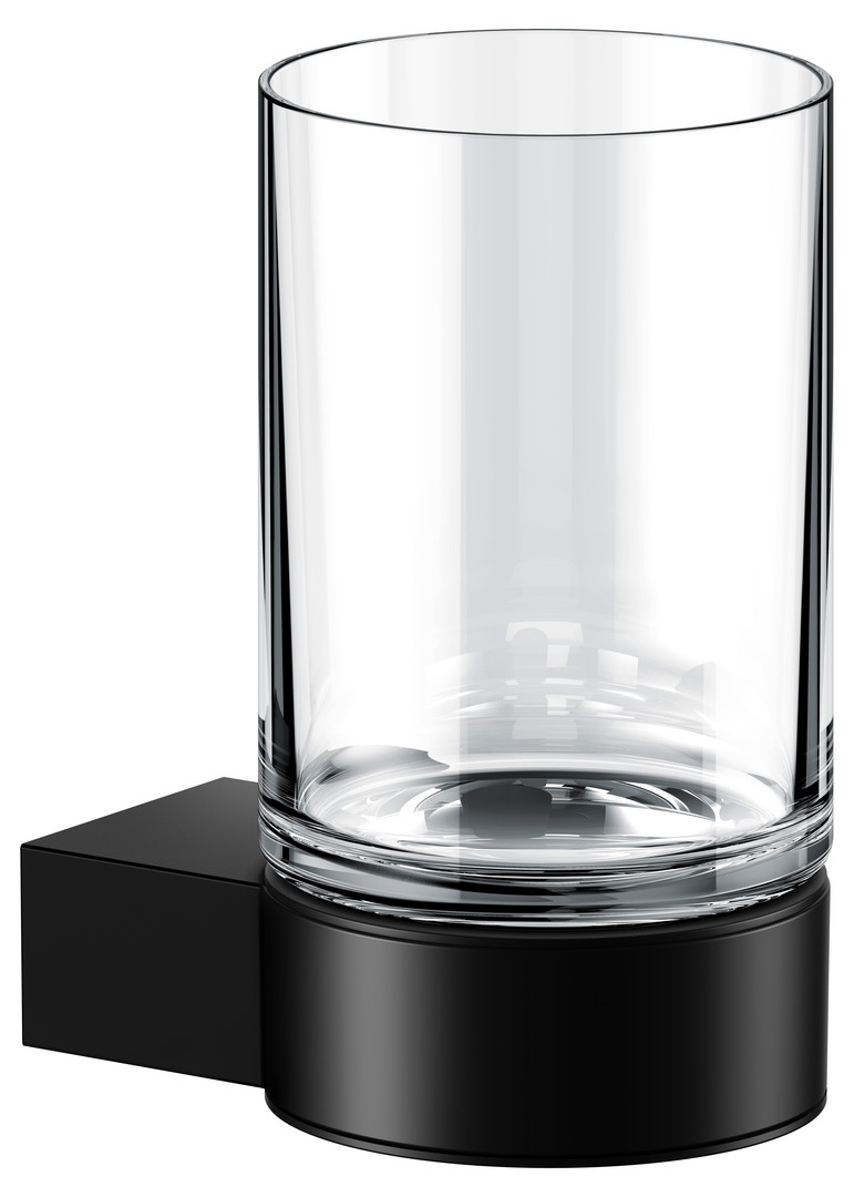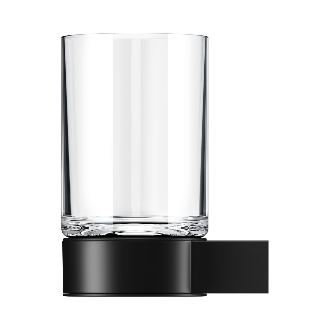 KEUCO Glashalter Plan mit Echtkristall-Glas und Halter, schwarz matt