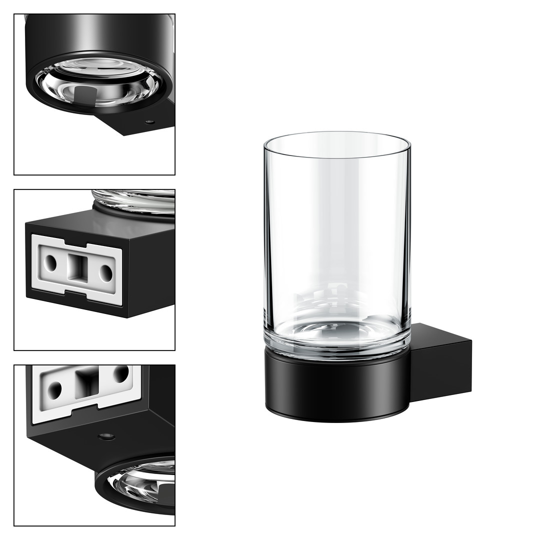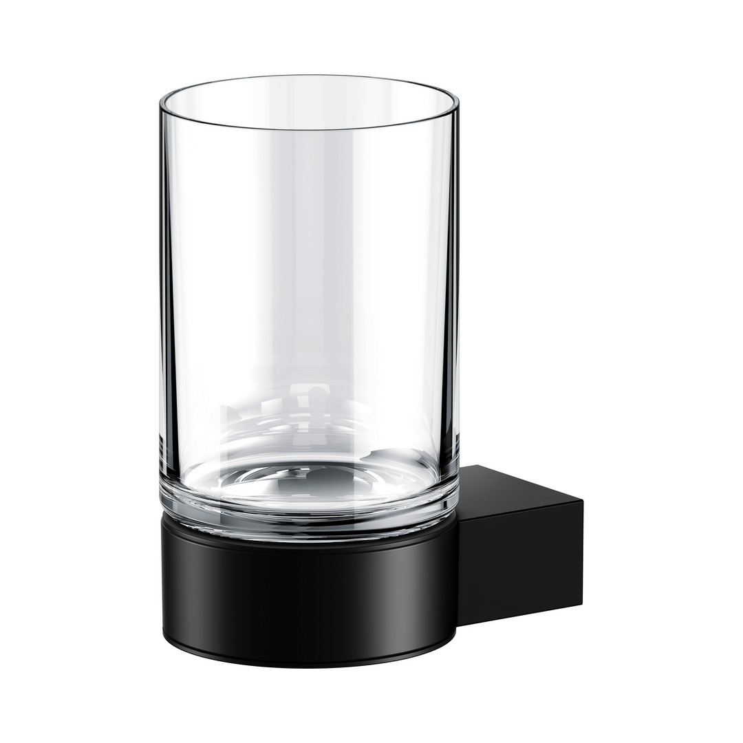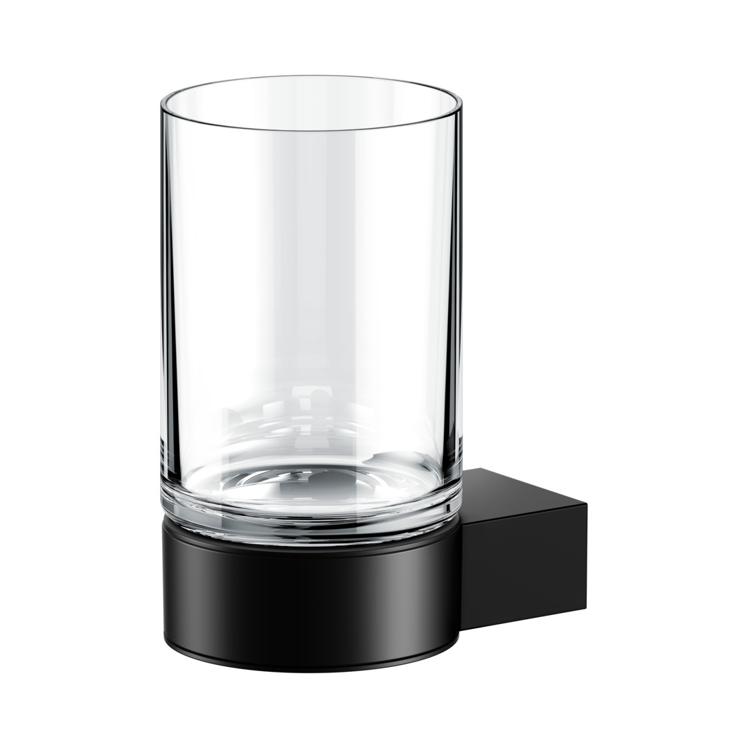 KEUCO Glashalter Plan mit Echtkristall-Glas und Halter, schwarz matt