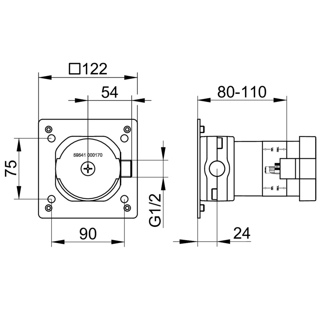 KEUCO Grundkörper Einbautiefe 80-110mm, für 1 Verbraucher, für UP-Absperrventil mit Schlauchanschluss