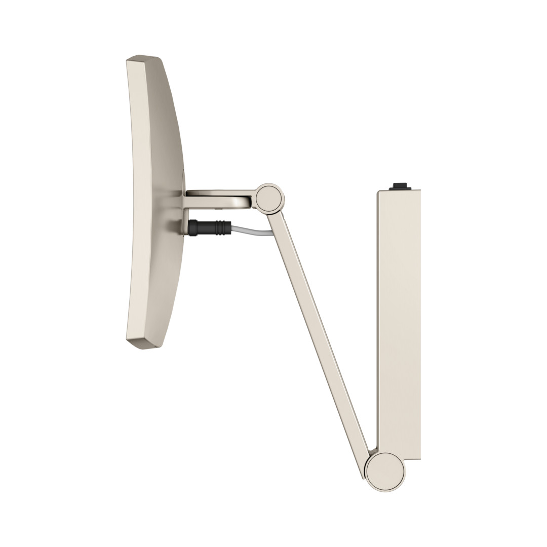 IP24, Wandmodell, eckig, 6500 Kelvin (Tageslicht), an dreidimensional verstellbarem Schwenkarm, Spiegel einseitig, Vergrößerungsfaktor x 5, Bedienung über integrierten Wippschalter, Stromversorgung: 12 V Netzteil im Wandarm integriert, Eingangsbereich 220~240 V, Beleuchtung: LED 7 Watt