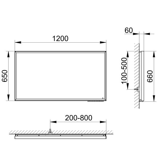 umlaufender Rahmen Aluminium, Bedienfeld mit kapazitiver Toch-Sensorik, Funktionen ein-/ausschalten, stufenlos dimmbar, Einstellen der Lichtfarbe, integrierte Nebenstellenfunktion (Raumschalter), Beleuchtung 2700 Kelvin (warmweiß) bis 6500 Kelvin (tageslichtweiß), Rahmen- und Waschtischbeleuchtung, LED 48/50/53/57/60/62/70/77 W, Spiegelheizung mittig platziert, optische Anzeige der Aufheizphase, automatische Abschaltung nach 20 Minuten