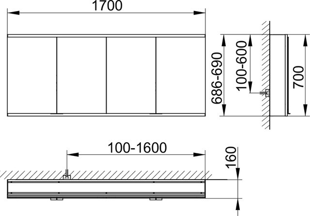 KEUCO Spiegelschrank Royal Modular 2.0 DALI 170 x 70 x 16 cm, ohne Steckdose, Wandvorbau, 4 Türen K20593170