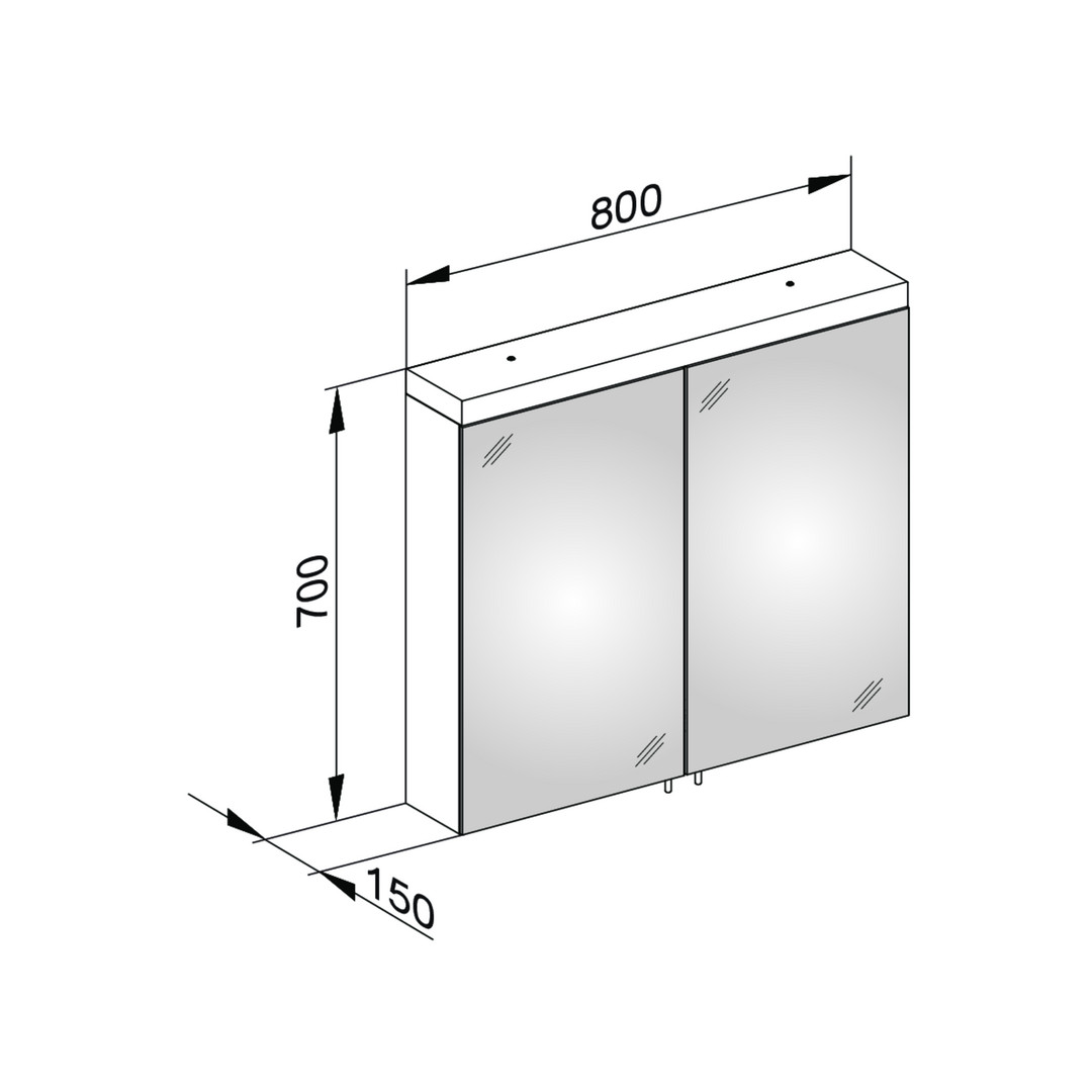 KEUCO Spiegelschrank Royal Reflex 2 Wandvorbau, silber-eloxiert, 2-türig, 800 x 700 x 150 mm