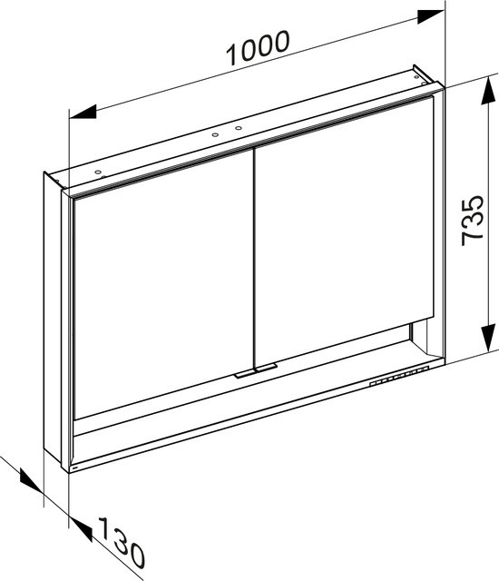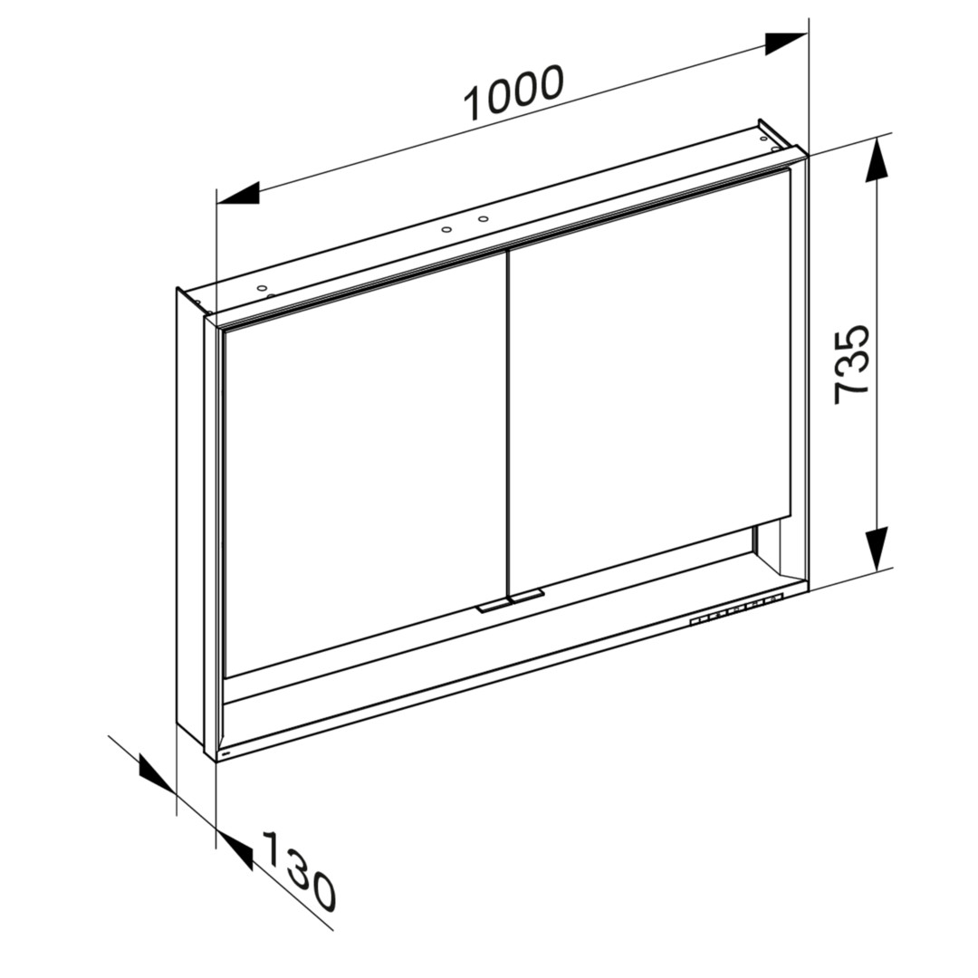 KEUCO Spiegelschrank kurze Türen Royal Lumos 100 x 73,5 x 13 cm, ohne Ablage DALI, AP, 2-türig, mit Spiegelheizung