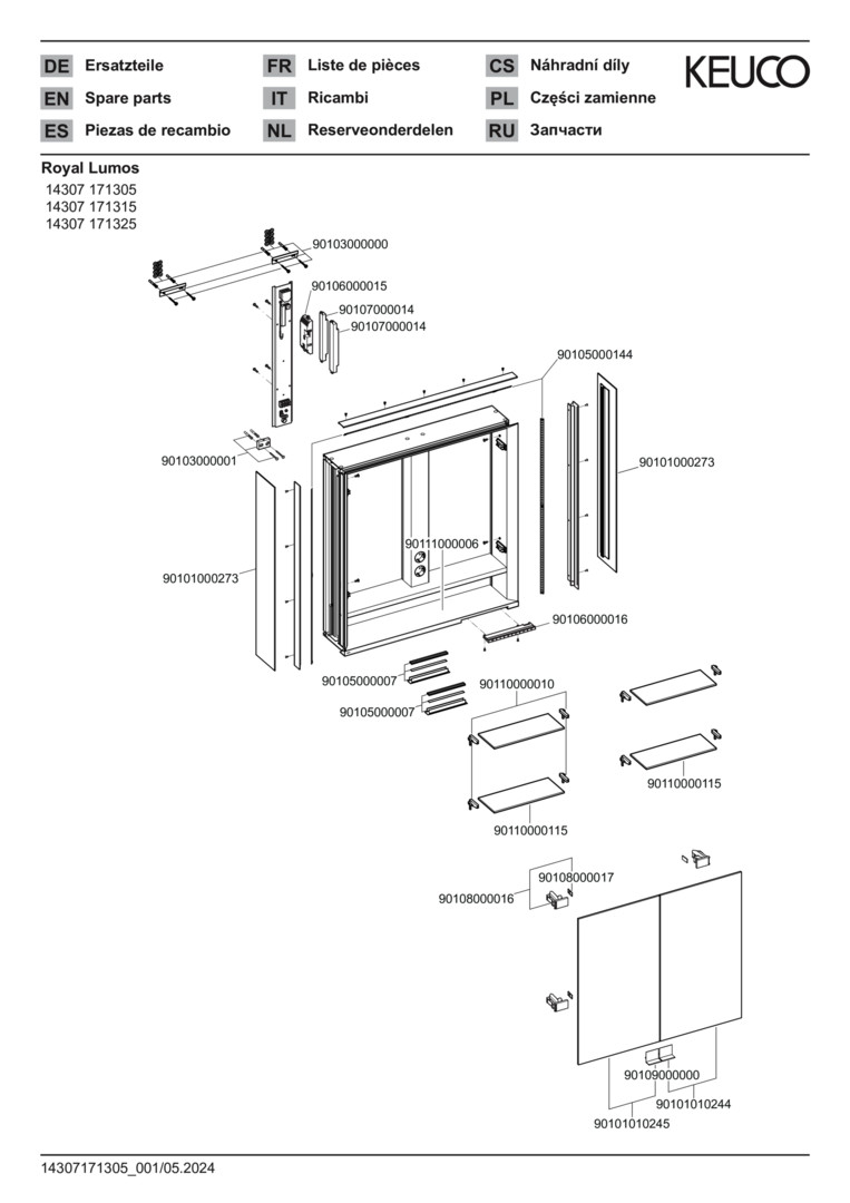Schutzart IP 24, Drehtür aus Kristall-Doppelspiegel mit Anschlagsdämpfung, Korpus Aluminium silber-eloxiert, Korpusseite Spiegel, Korpusrückwand Spiegel, Bedienfeld mit kapazitiver Touch-Sensorik, ein-/ausschalten, stufenlos dimmbar, Einstellen der Lichtfarbe, integrierte Nebenstellenfunktion (Raumschalter), Beleuchtung 2700 Kelvin (warmweiß) bis 6500 Kelvin (tageslichtweiß), vertikal und horizontal (nur oben), Waschtisch-/Fachbeleuchtung, Innenraumausleuchtung, LED, 55/56/58/60/61 W, Ausstattung 2 Steckdosen, 2x 2 höhenverstellbare Glasböden, offenes Ablagefach über die ganze Breite, Spiegelheizung mittig des Spiegels platziert, optische Anzeige der Aufheizphase, automatische Abschaltung nach 20 Minuten, 60 W