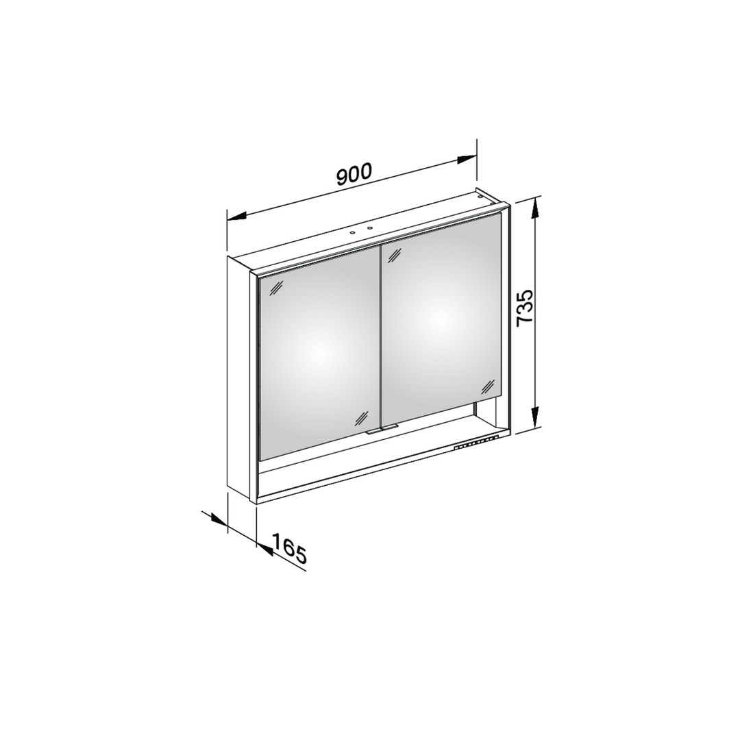 KEUCO Spiegelschrank kurze Türen Royal Lumos 90 x 73,5 x 16,5 cm, ohne Ablage DALI, AP, 2-türig, mit Spiegelheizung