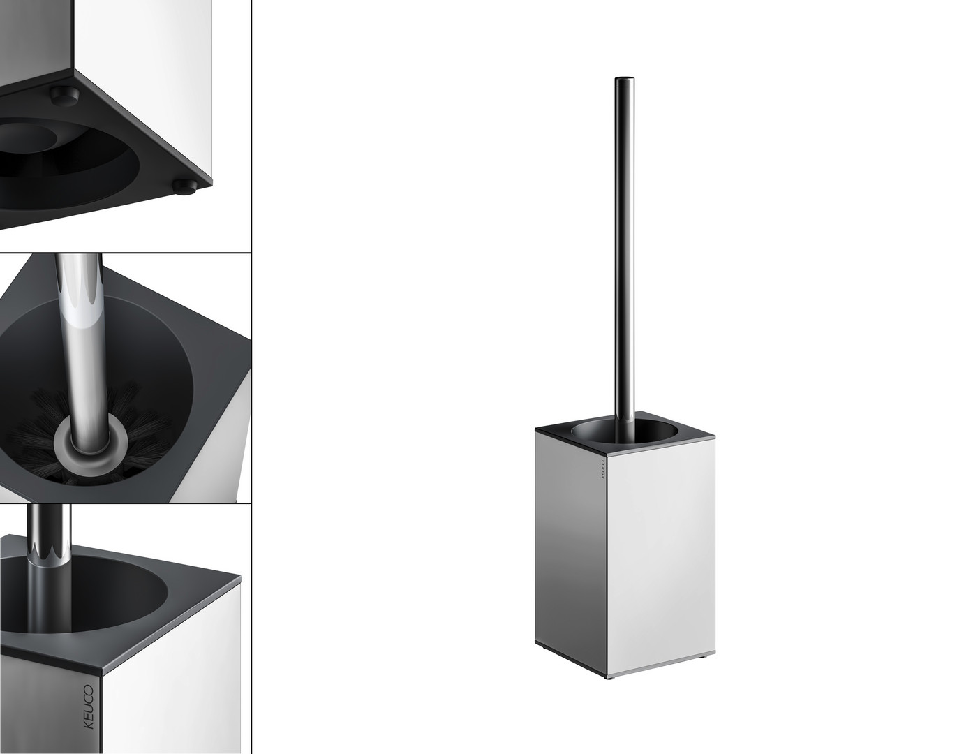 KEUCO Toilettenbürstengarnitur Edition 90 Square Standmodell, Kunststoffeinsatz anthrazit, verchromt