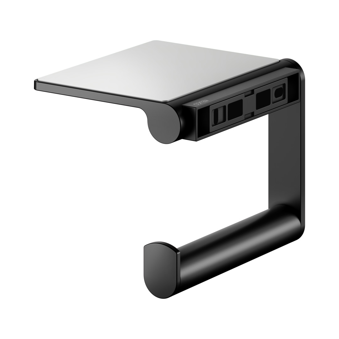 KEUCO Toilettenpapierhalter Plan offen, mit Ablage, schwarz matt / schwarz