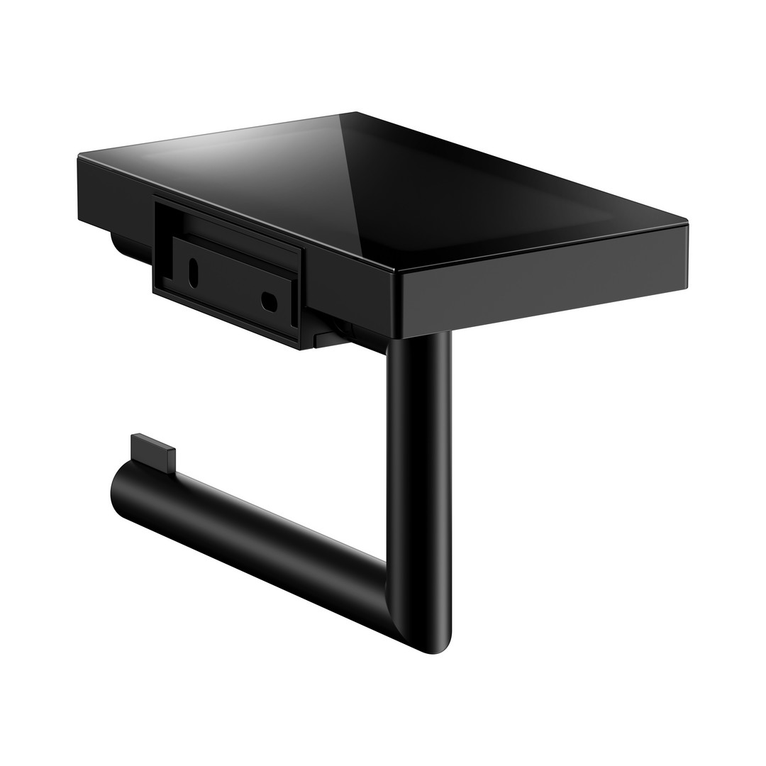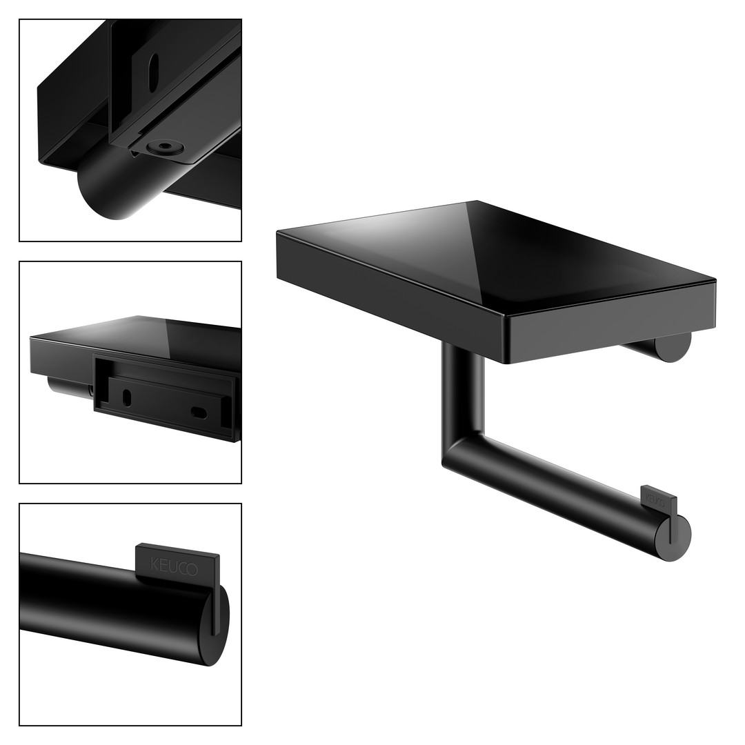 KEUCO Toilettenpapierhalter REVA schwarz matt, mit Glasablage, offene Form, Rollenbreite 100/120mm