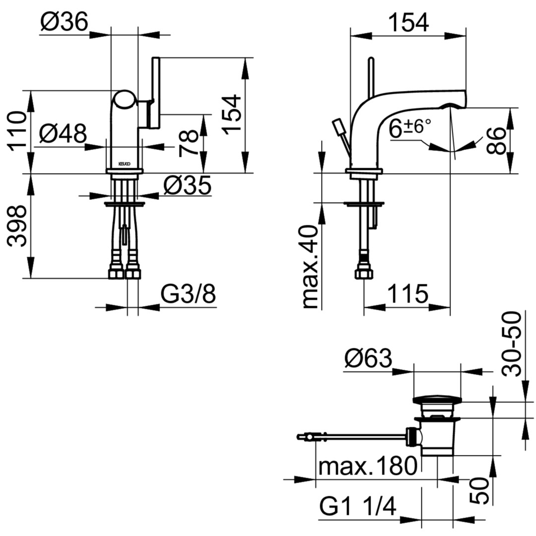 KEUCO Waschtisch-Einhebelmischer 80 Edition 400 Ausladung 115mm, mit Ablaufgarnitur, verchromt K20578934