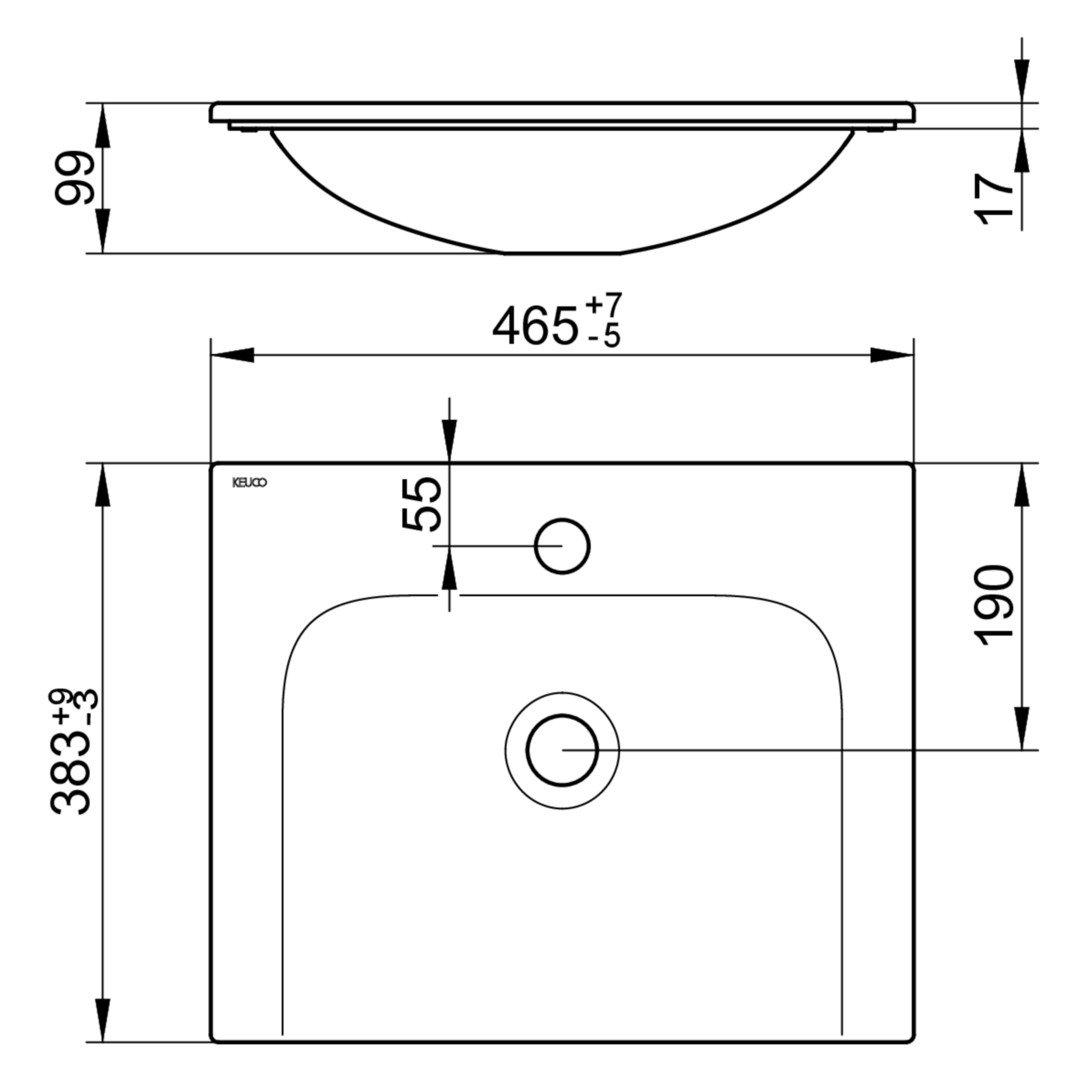 KEUCO Einbau-Gästewaschtisch X-Line 46,5x1,7x38,3cm, 1 Hahnloch, ohne Überlauf, weiß