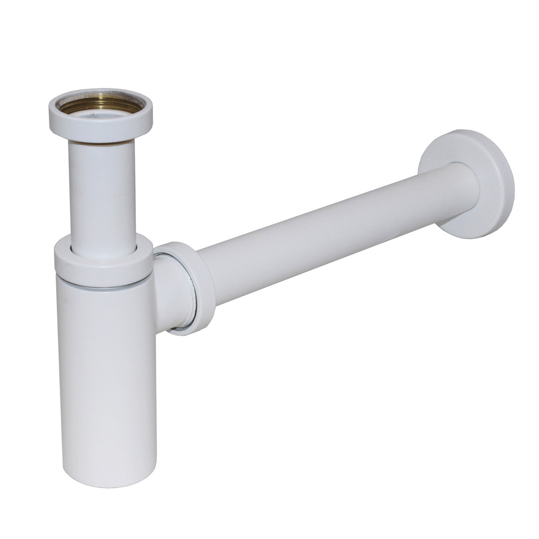 KÖRO Sifon Runddesign 1 1/4"x32 mm m. Wandrohr+Rosette, ms matt weiß