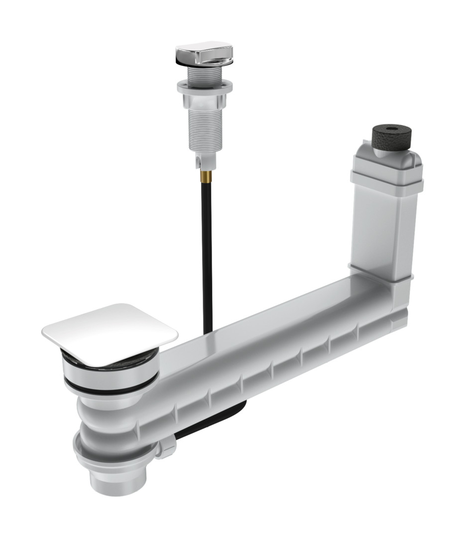 verschließbares Ablaufventil G 1 1/4 AG für KALDEWEI Waschtische ohne Überlauf, integrierte und unsichtbare Überlauffunktion, Betätigung über Kabelzug und Drehknopf, Ab- und Überlaufventil Clou mit Kabelzug und Drehknopf (Bowdenzug), eckiger Deckel, passend für CONO Waschtische, Material Kunststoff, Material Deckel Stahl-Email, Farbe Deckel alpinweiß, Deckel Ø 75 mm, Anschluss G 1 1/4 AG, Prüfung DIN EN 274, Ablaufleistung 36 l/min