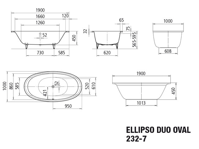 Kaldewei Badewanne ELLIPSO DUO oval 232-7 190x100cm, VKT weiß, weiß K21703587