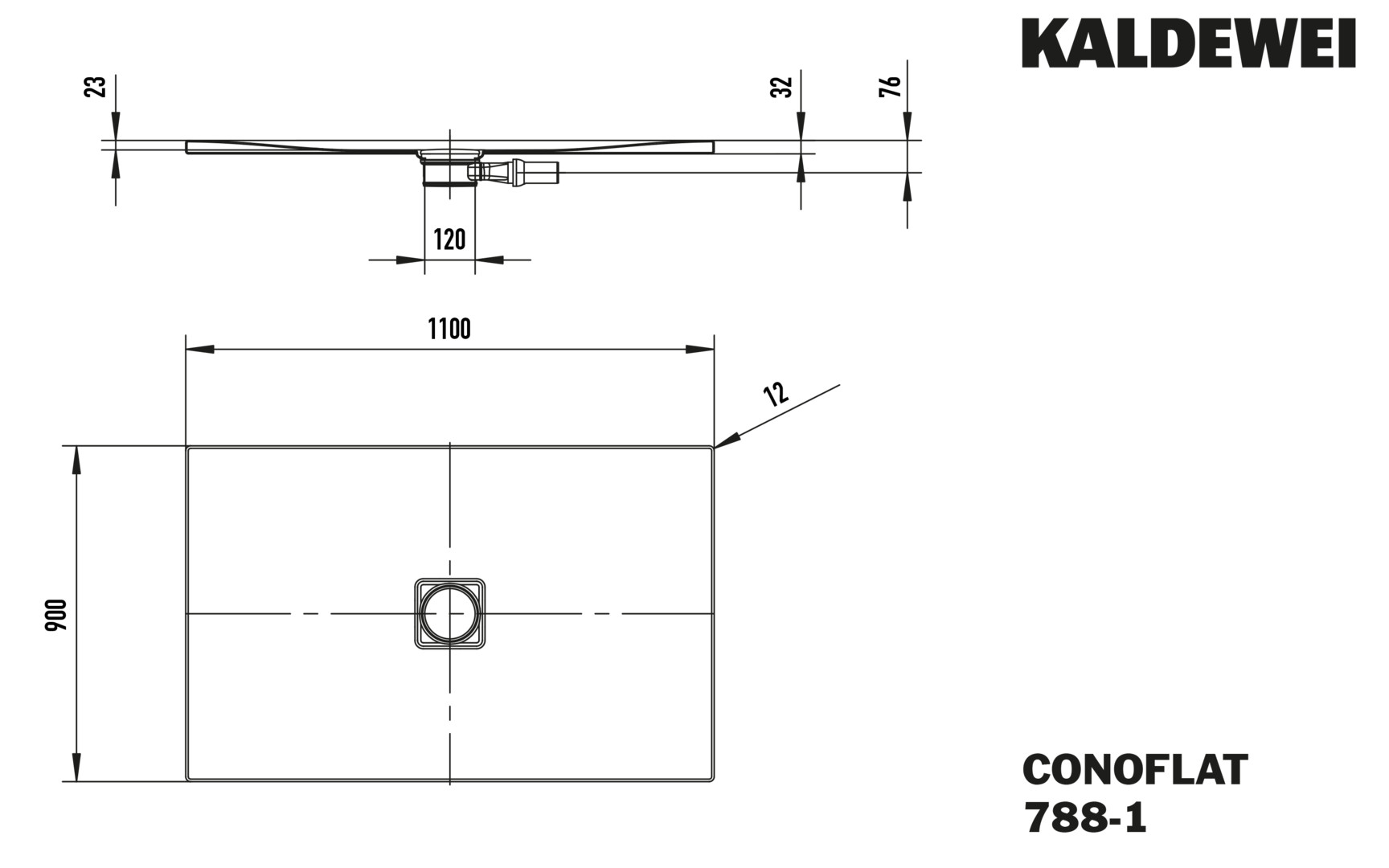 Kaldewei Duschfläche CONOFLAT 788-1 90x110cm, warm grey60