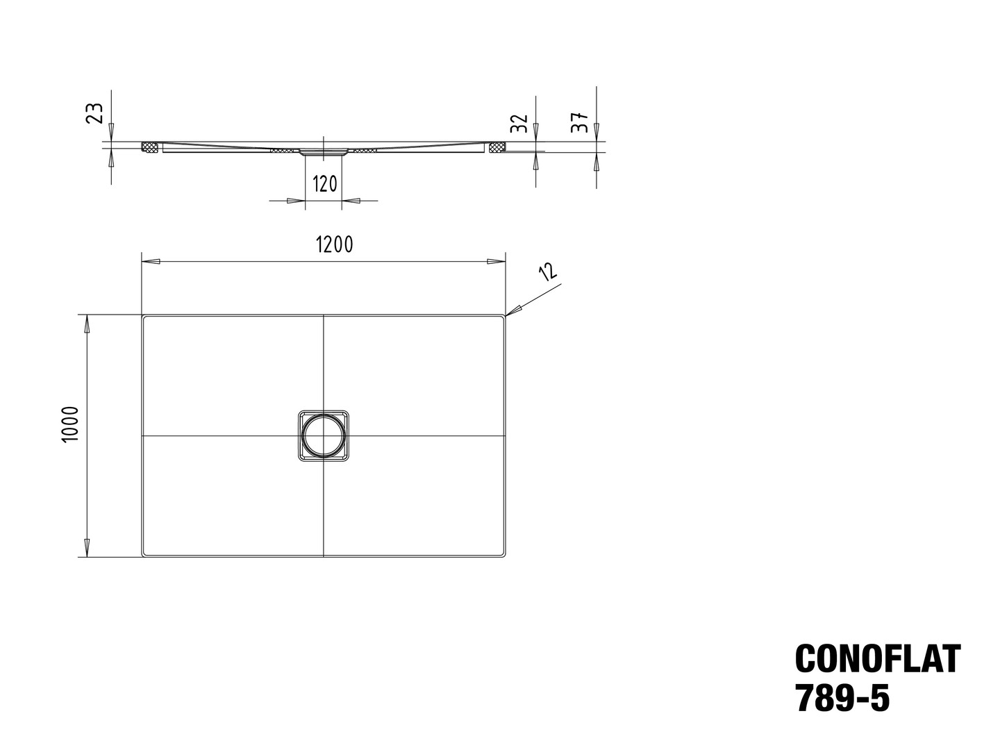 Kaldewei Duschfläche CONOFLAT 789-5 100x120cm, flach, Träger, ohne Effekt/Antislip, warm grey60