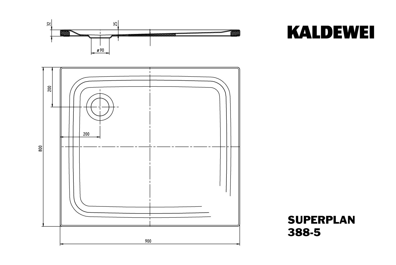 Kaldewei Duschfläche SUPERPLAN CLASSIC 388-5 80x90cm, flach, Träger, ohne Effekt/Antislip, weiß K10893458