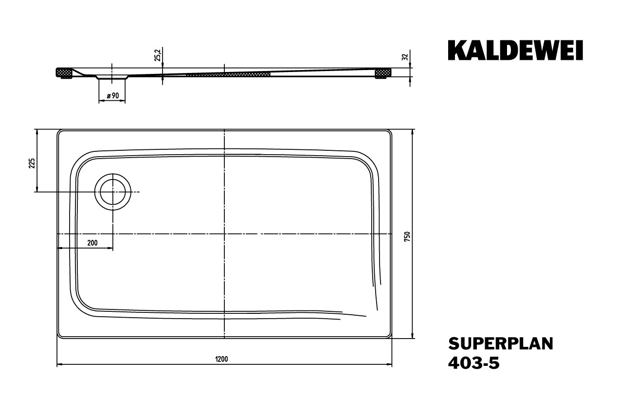Kaldewei Duschfläche SUPERPLAN CLASSIC 403-5 75x120cm, flach, Träger, ohne Effekt/Antislip, weiß K10891738