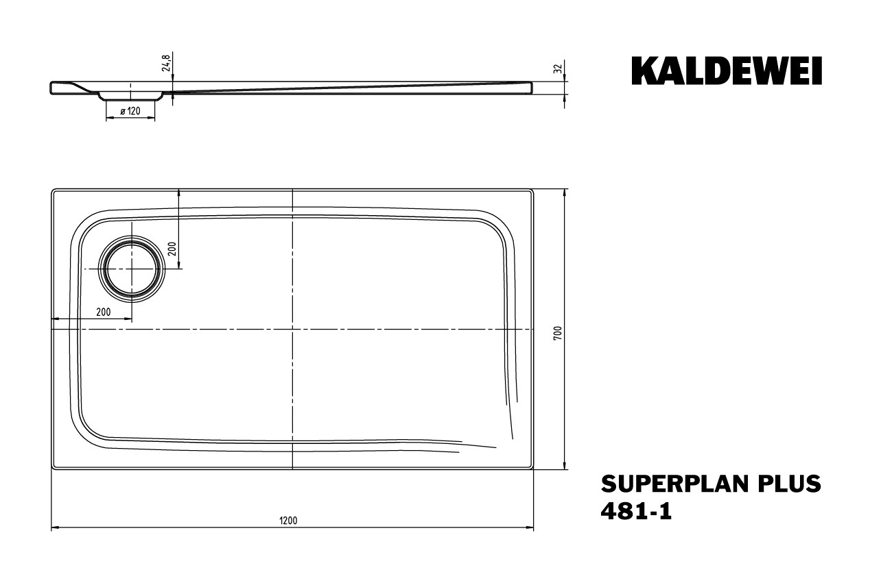 Kaldewei Duschfläche SUPERPLAN PLUS 481-1 70x120cm, Secure Plus, weiß