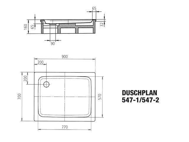 Kaldewei Duschwanne DUSCHPLAN 547-2 70x90x6,5cm, mit Träger, weiß
