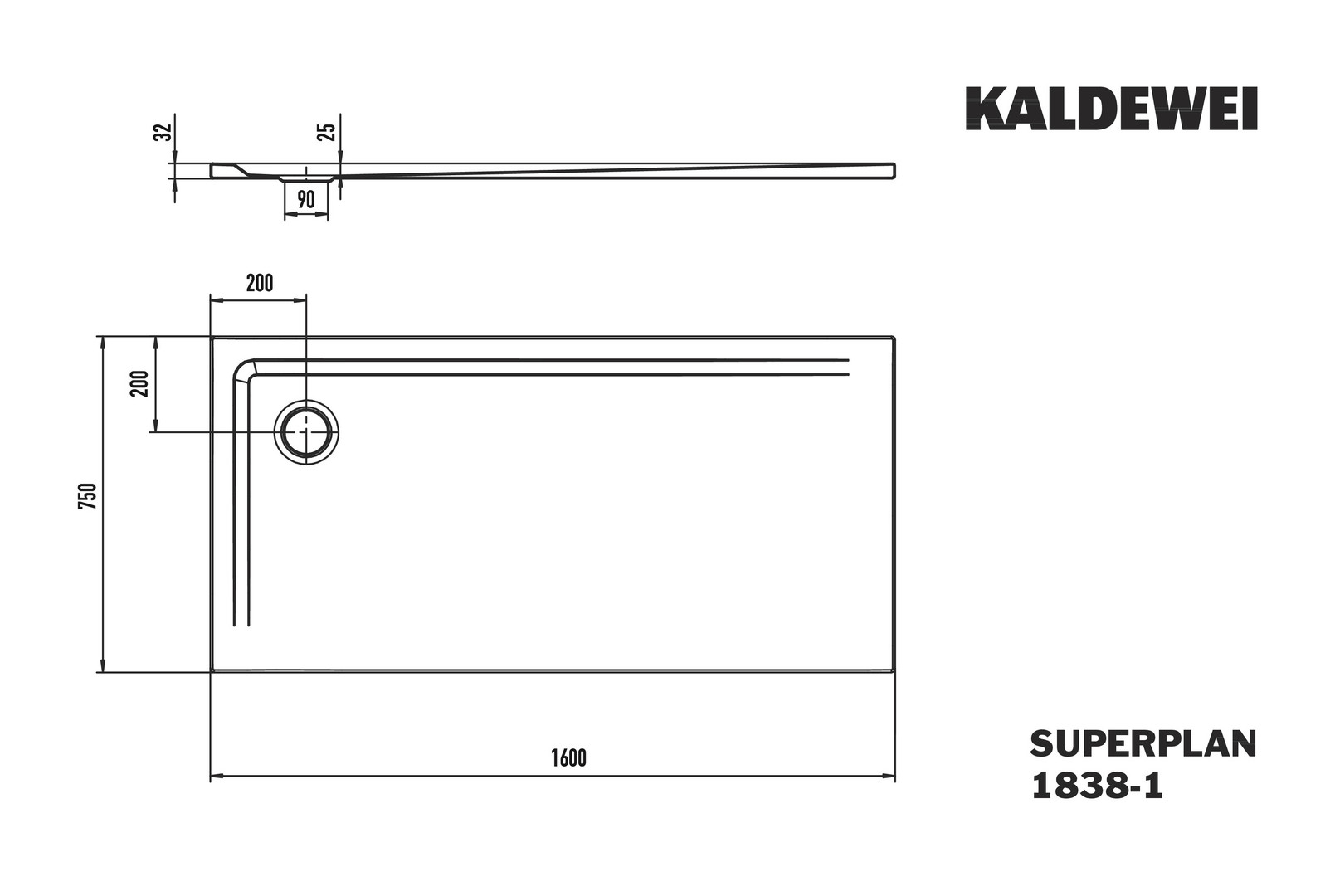 Kaldewei Duschwanne SUPERPLAN 1838-1 75x160cm, manhattan K21705936