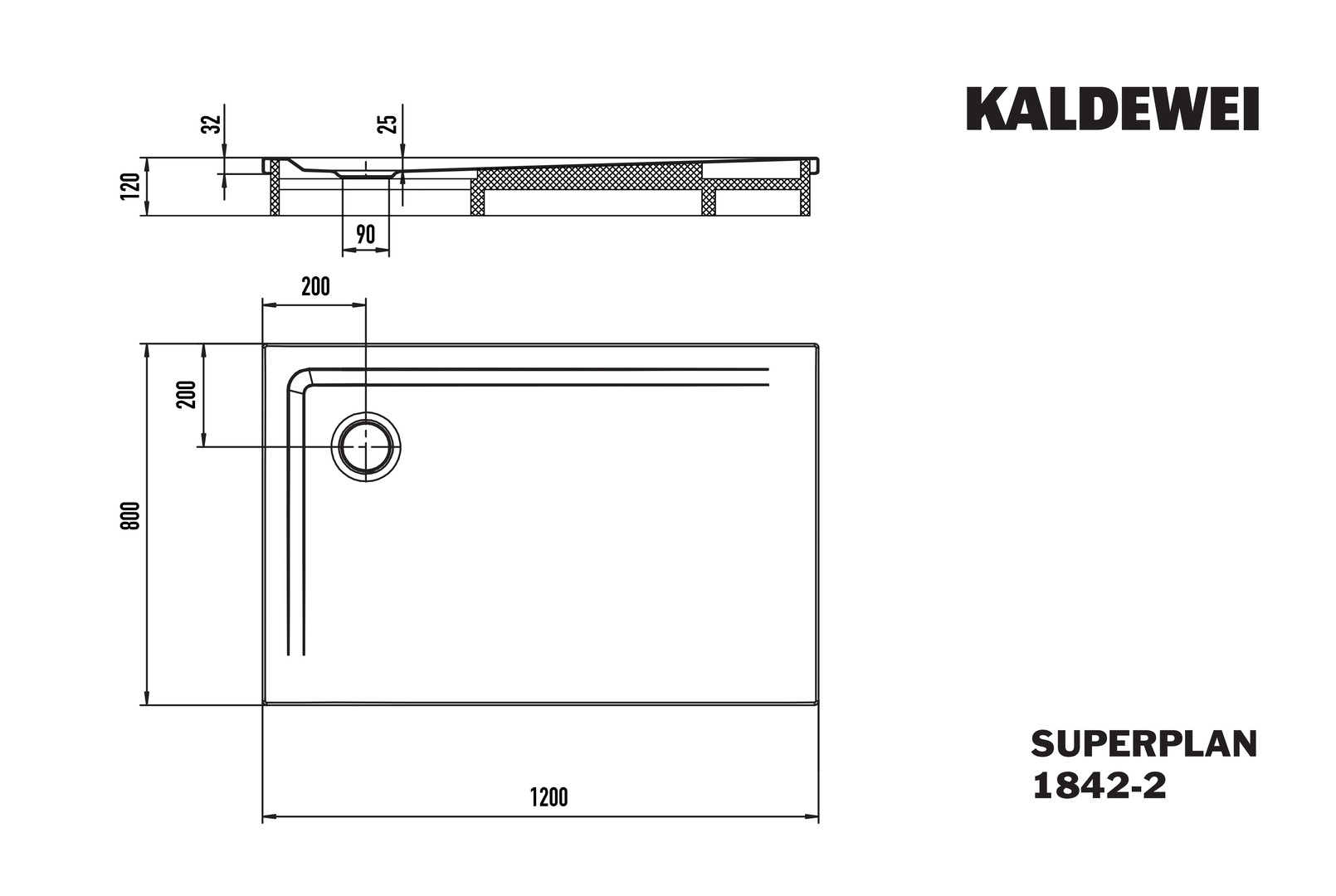 Kaldewei Duschwanne SUPERPLAN 1842-2 80x120x2,5cm, mit Träger, weiß 208987