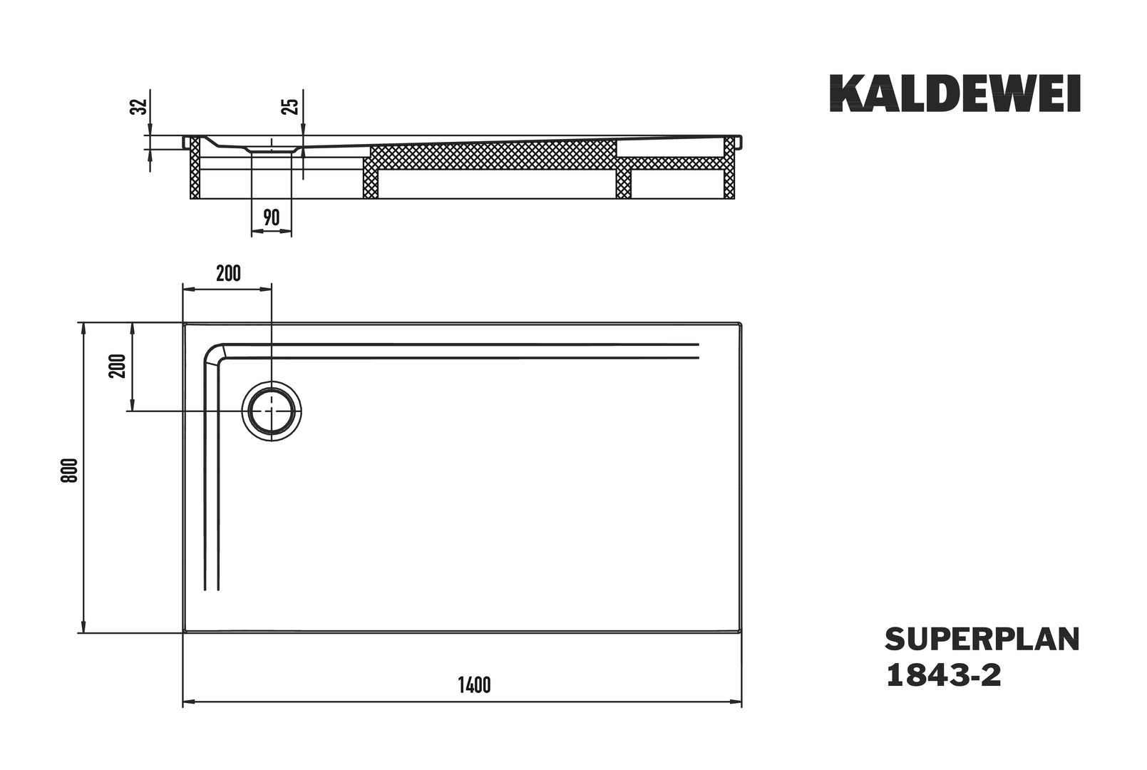 Kaldewei Duschwanne SUPERPLAN 1843-2 80x140cm, mit Styroporträger, weiß K21707005