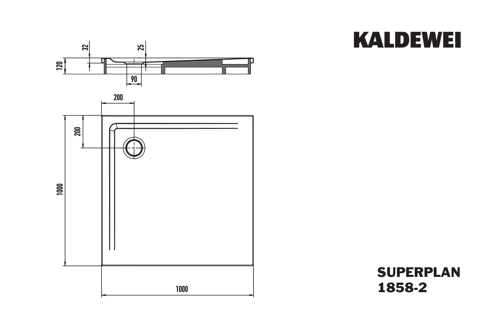 Kaldewei Duschwanne SUPERPLAN 1858-2 100x100x2,5cm, mit Träger, weiß 208982