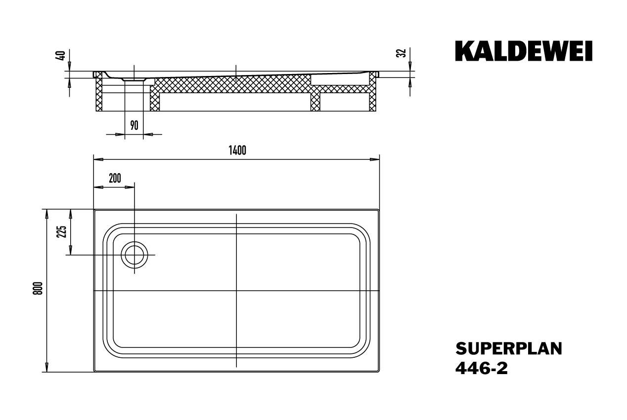 Kaldewei Duschwanne SUPERPLAN CLASSIC 446-2 80x140x4cm, mit Styroporträger, weiß K7202278