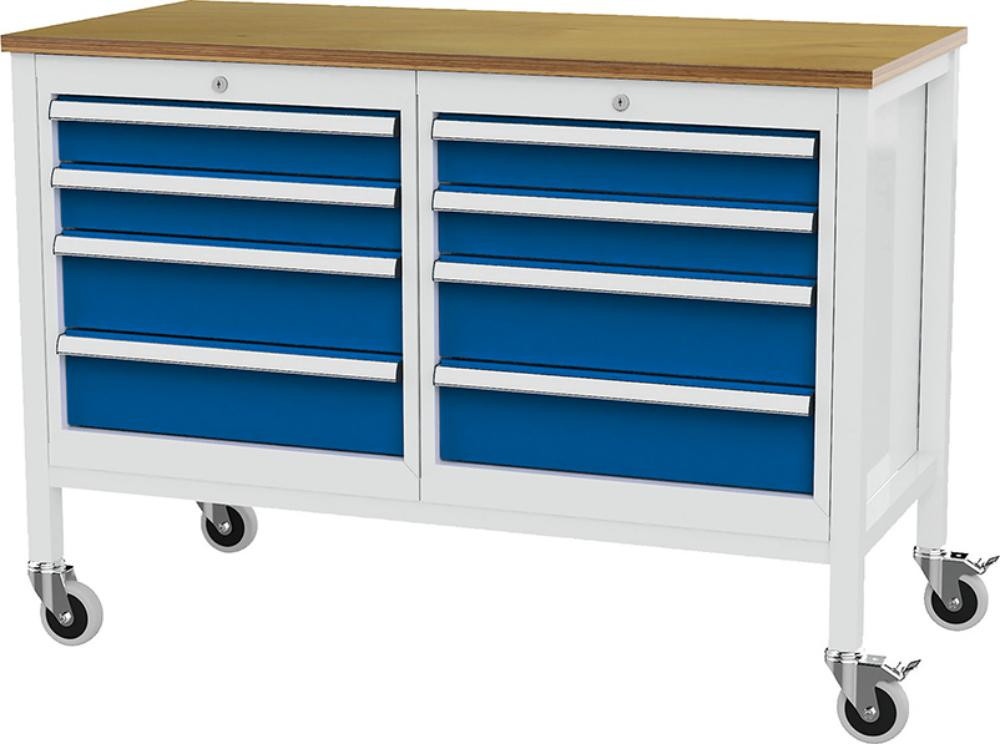 Kastenwerkbank mobil B1300mm 8 Schubladen RAL7035/5010