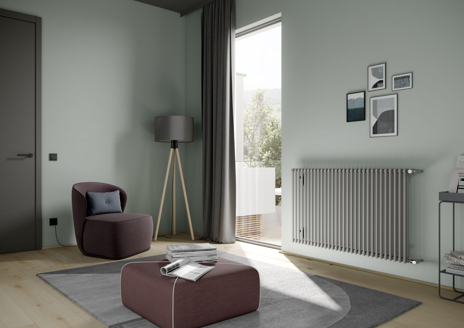 für alle Wohn- und Objektbereiche, variabel in Dimensionierung und Heizleistung, verschiedene Anschlussmöglichkeiten, Befestigungs-Set beigepackt, entspricht der Anforderungsklasse II der Richtlinie VDI 6036, bauseits ist der Wandbaustoff auf ausreichende Tragfähigkeit zu prüfen, alle sichtbaren Befestigungsteile in Heizkörperfarbe, Wandkonsolen kurz (oben), Distanzhalter (unten), Wandabstand 53 mm, Bautiefe 64 mm