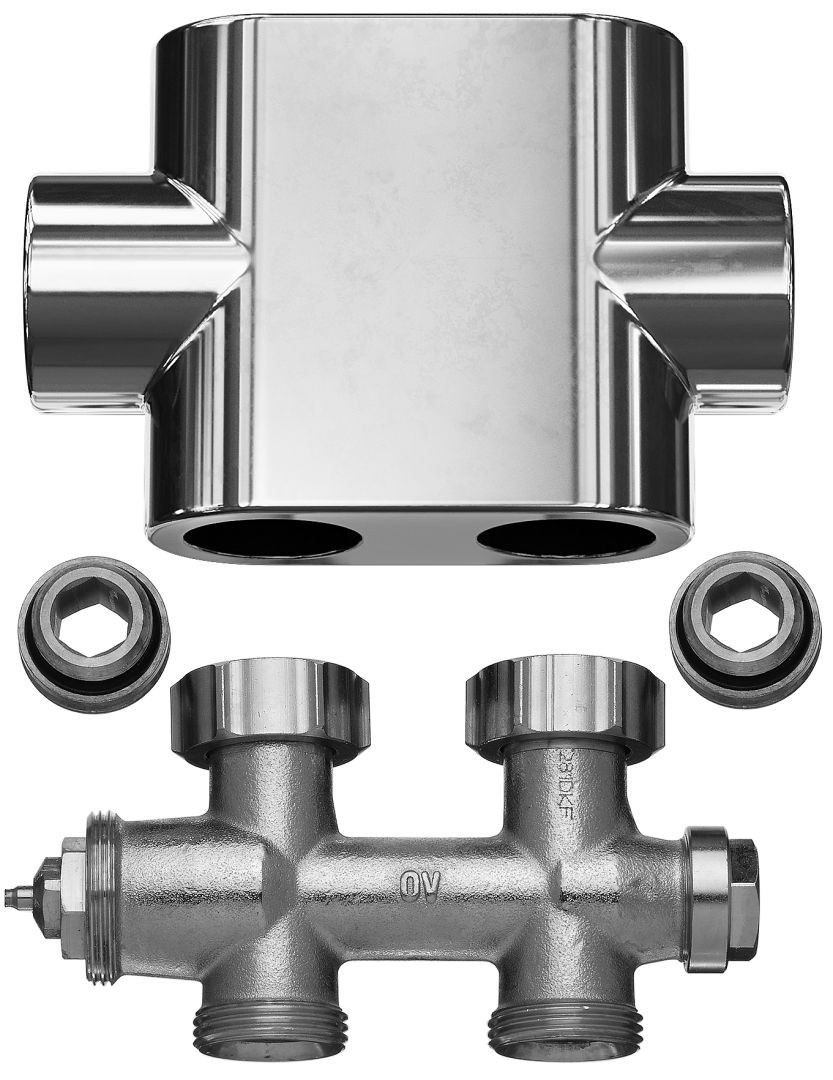 Kermi Ventilhahnblock-Set Durchgang, Blende chrom