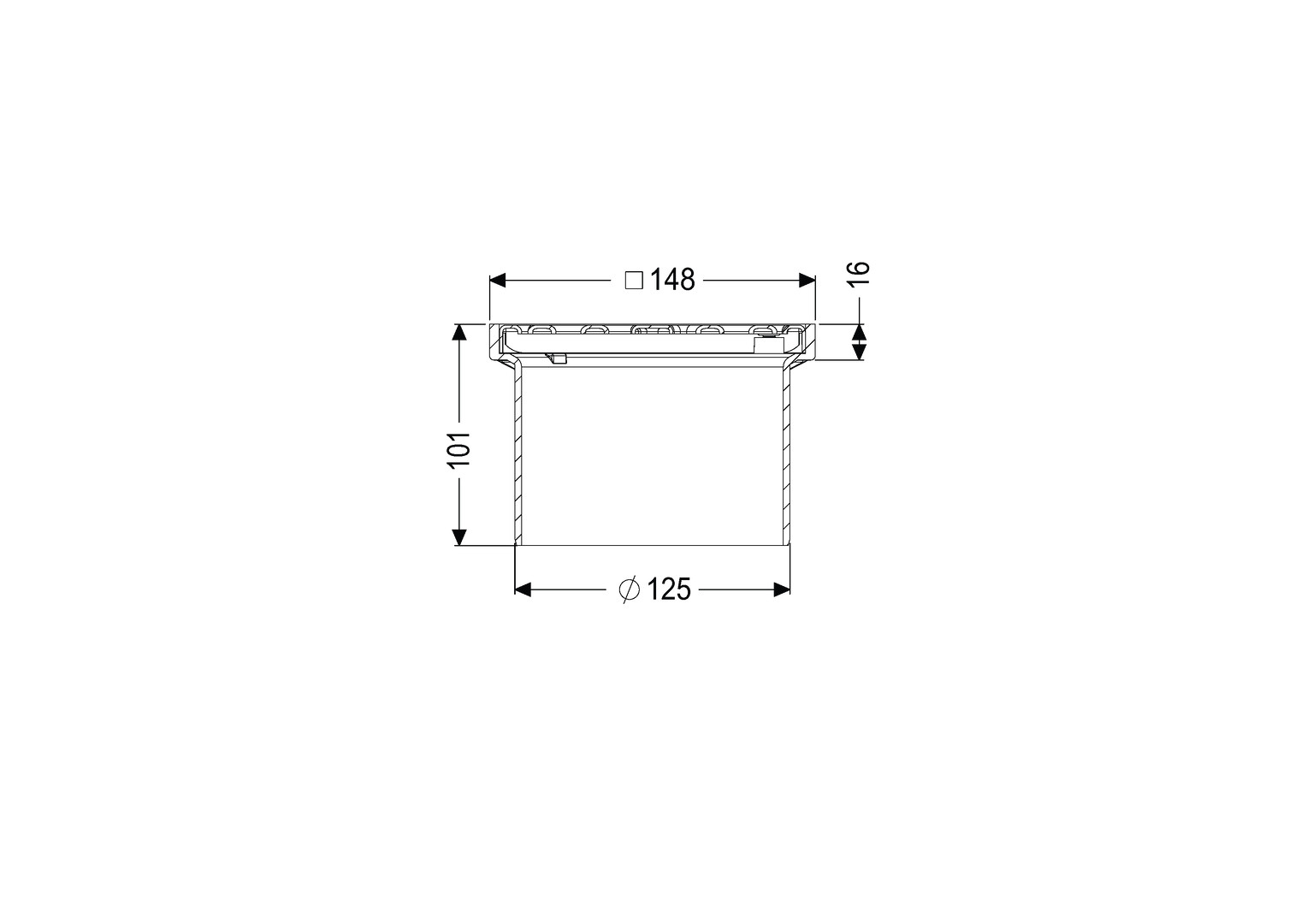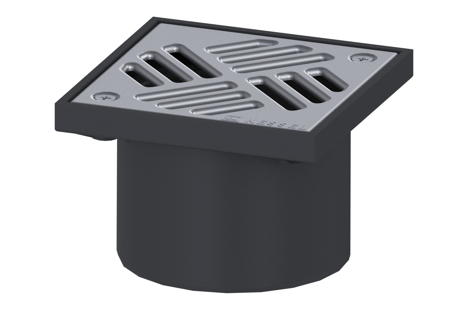 Kessel Aufsatzstück 138 x 138 mm, mit Schlitzrost, Abdeckung aus Edelstahl V2A, verschraubt