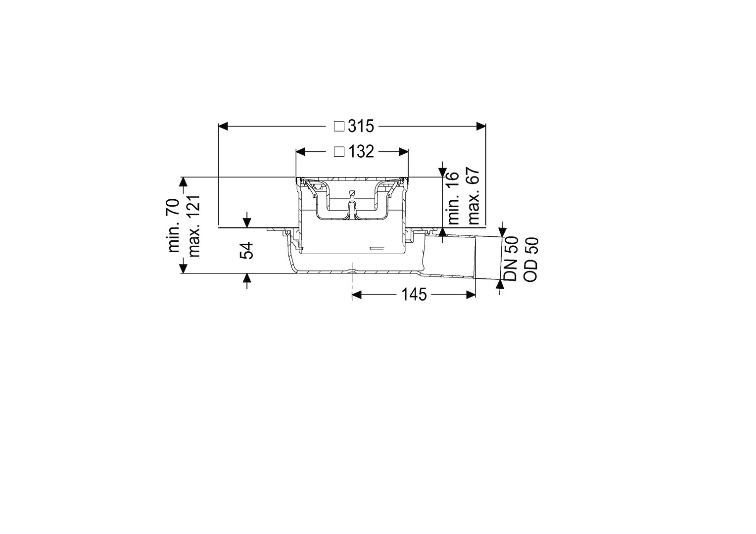 aus ABS, Auslauf seitlich, herausnehmbarer Geruchsverschluss im Aufsatzstück, werkseitig angebrachte Dichtmanschette nach DIN EN 1253-6 und DIN 18534-1-W3-I, Abdeckung Designrost 120 x 120 mm (Rutschhemmklasse R9 nach DIN 51130 und C nach DIN 51097) und Rahmen (Höhe 16 mm) aus Edelstahl V2A, Klasse L 15, Sperrwasserhöhe 22 mm, Abflussleistung DN 40 0,9 l/s, Abflussleistung DN 50 0,8 l/s, Aussparungsmaße 350 x 350 mm