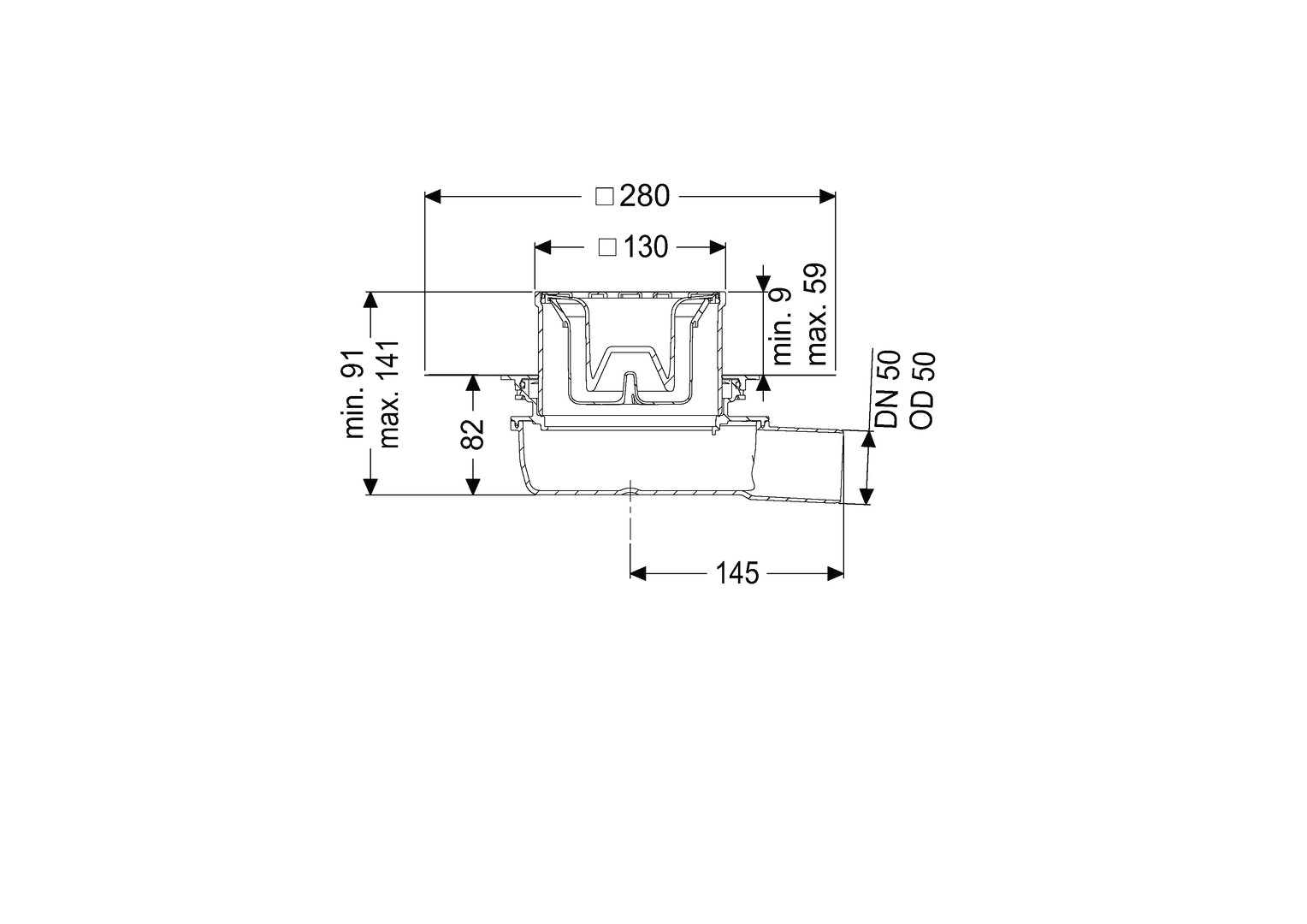 | Sperrwasserhöhe | 50 mm |