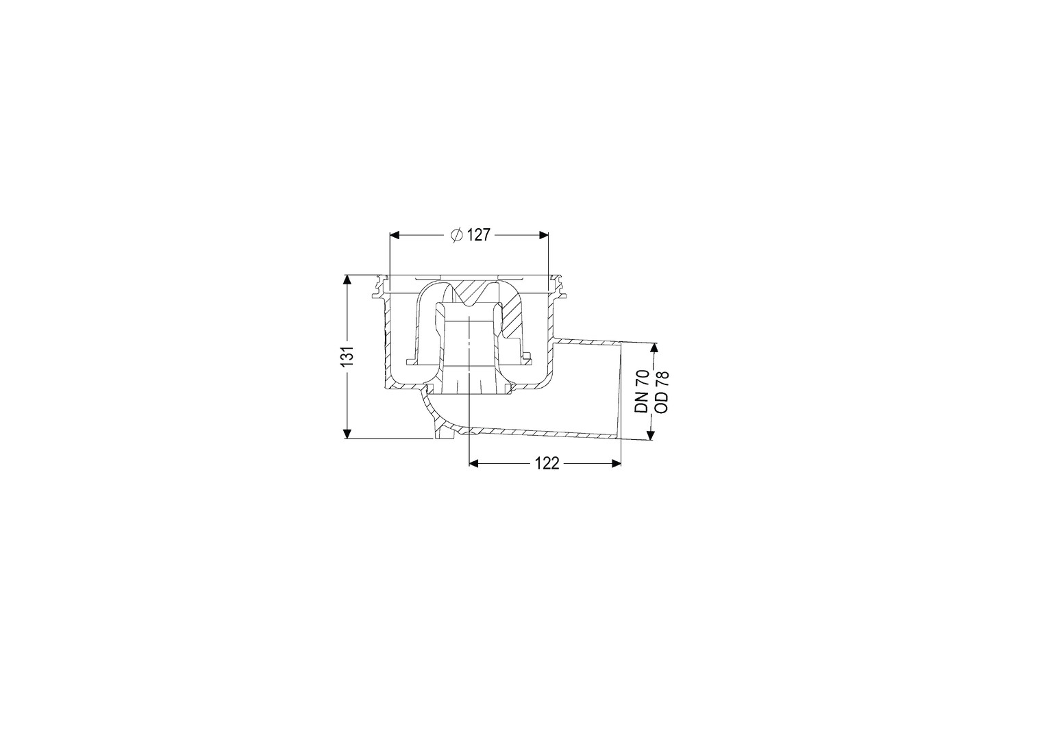 Kessel Bodenablauf-Grundkörper Ecoguss DN/DA 70/78, 134 x 109 mm, Auslauf seitlich, mit Anschlussrand
