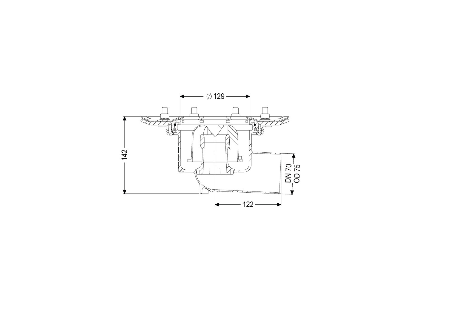 Kessel Bodenablauf-Grundkörper Practicus DN/DA 70/75, 134 x 107 mm, Auslauf seitlich, mit Pressdichtungsflansch